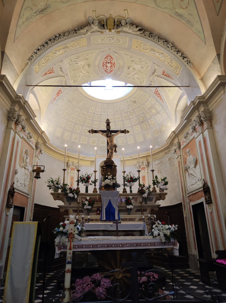 Il borgo di Seborga ha case antiche e meno antiche, mescolate, pochi negozietti, non troppi b&b, qualche ristorante… Ma ci sono alcune piccole chicche che vale la pena di scoprire: la prima è l’Oratorio della Madonna miracolosa dell’ Alvenia. Noi l’abbiamo trovato chiuso, ma una porta vetrata vi permetterà di vedere all’interno. Si tratta di un ambiente voltato a botte, con un pavimento lucidissimo, in stile moderno. Vi lasciamo a link un articolo che parla di questo discusso culto.