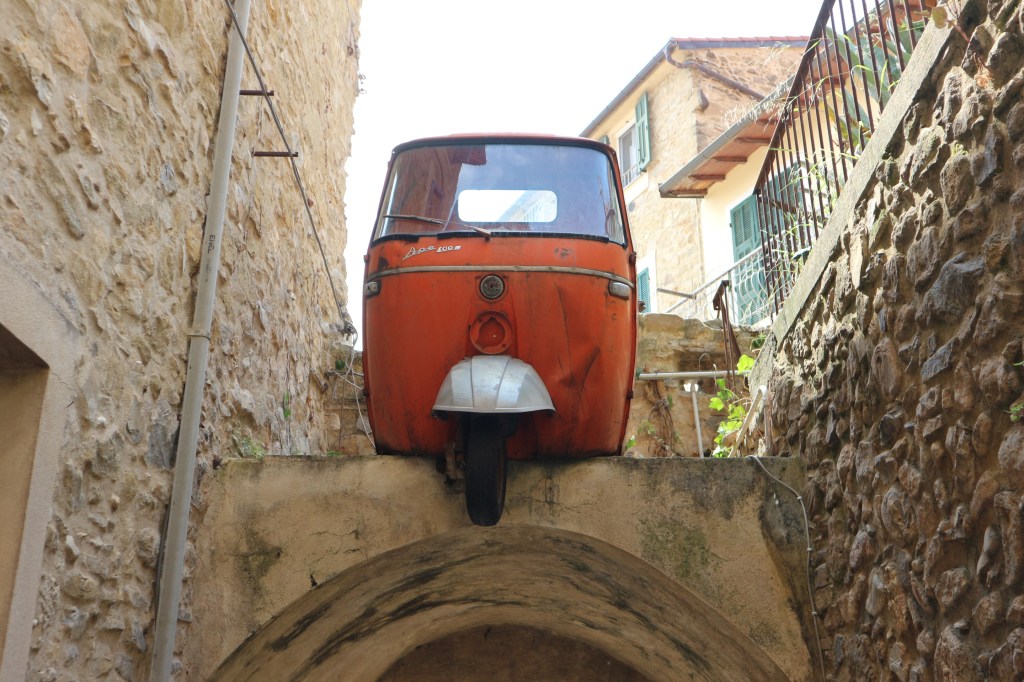 Tutta la vita del piccolo paesino è incentrata su questo piccolo mezzo di trasporto, che sfreccia nei carugi portando legna, mobili, o bambini (guidato da nonne sprint) o che staziona parcheggiato nei punti più svariati, spesso e volentieri trasformato in opera d’arte o arricchito da impensabili elementi estranei.