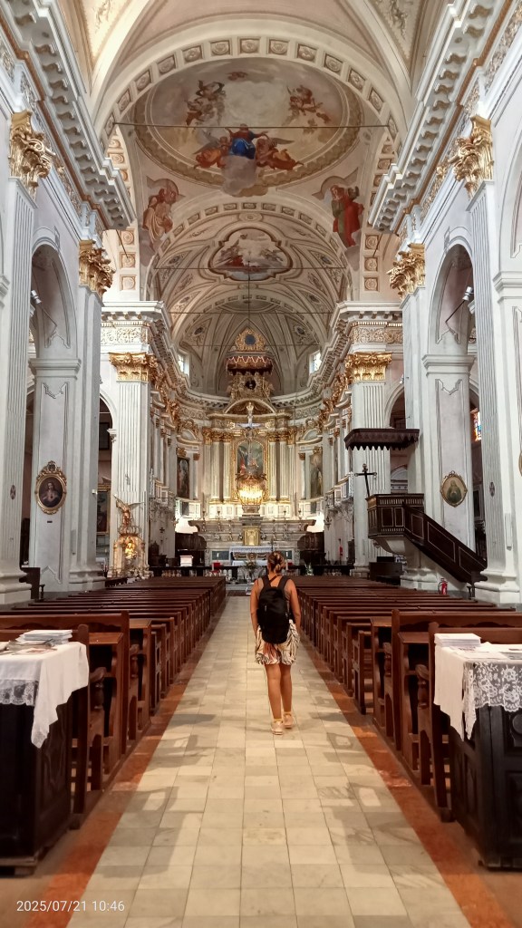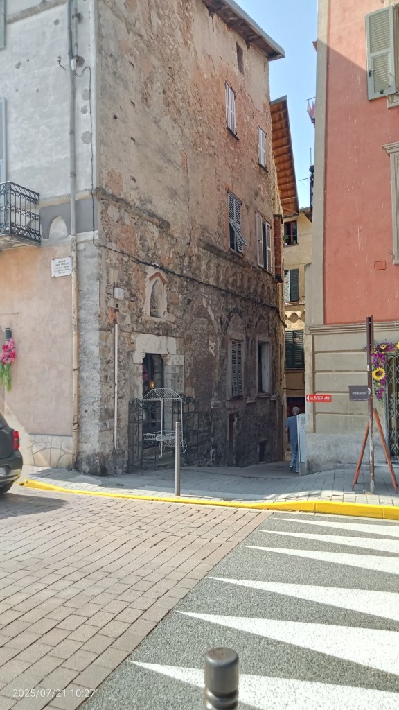 In continuità con la facciata della Cattedrale, a destra, troverete un loggiato antico a basse arcate tipico dei paesi dell’entroterra ligure e quindi ancora un altro loggiato, questa volta appartenente a Palazzo Ricci des Ferres, che nel 1809 diede ospitalità a Papa Pio VII allorché Napoleone gli impose l’uscita dallo Stato Pontificio ed un viaggio in Francia.