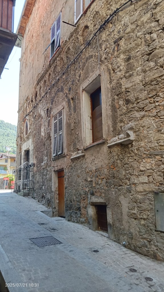 Terminata la visita del borgo vecchio, se varcherete il ponte verso l’altra sponda, troverete ad attendervi una piazzetta molto carina, con altri portici e decorazioni trompe l’oeil ed una bella fontana del 1700. Qui sostavano (si tratta infatti di una zona al di fuori del vecchio nucleo del paese) le carovane che percorrevano la Via del Sale… Questa parte di borgo doveva quindi avere tutta una particolarità di servizi da offrire ai viaggiatori.