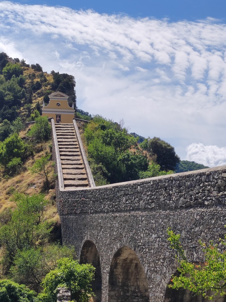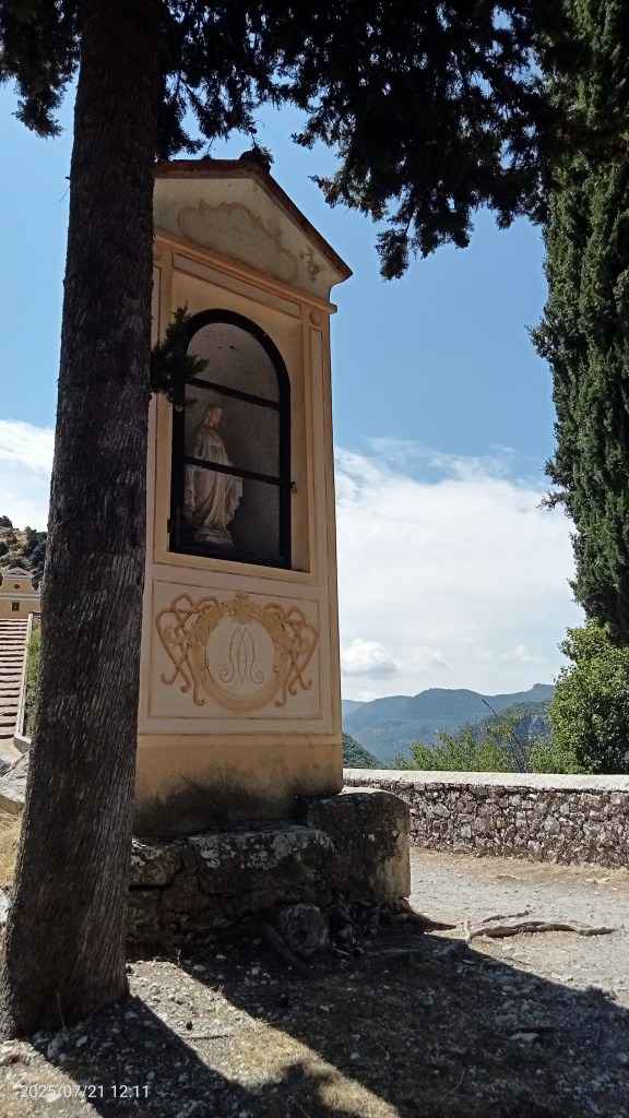La vista del monumento è davvero singolare. Vi troverete “sperduti” in una valle molto lontana dal mare e protesa verso le Alpi Marittime, nel silenzio, e con la rampa da risalire… Si tratta chiaramente di un percorso devozionale e di espiazione. Durante la salita i devoti recitando il rosario potevano chiedere grazie alla Madonna Miracolosa e poi lasciare doni.
