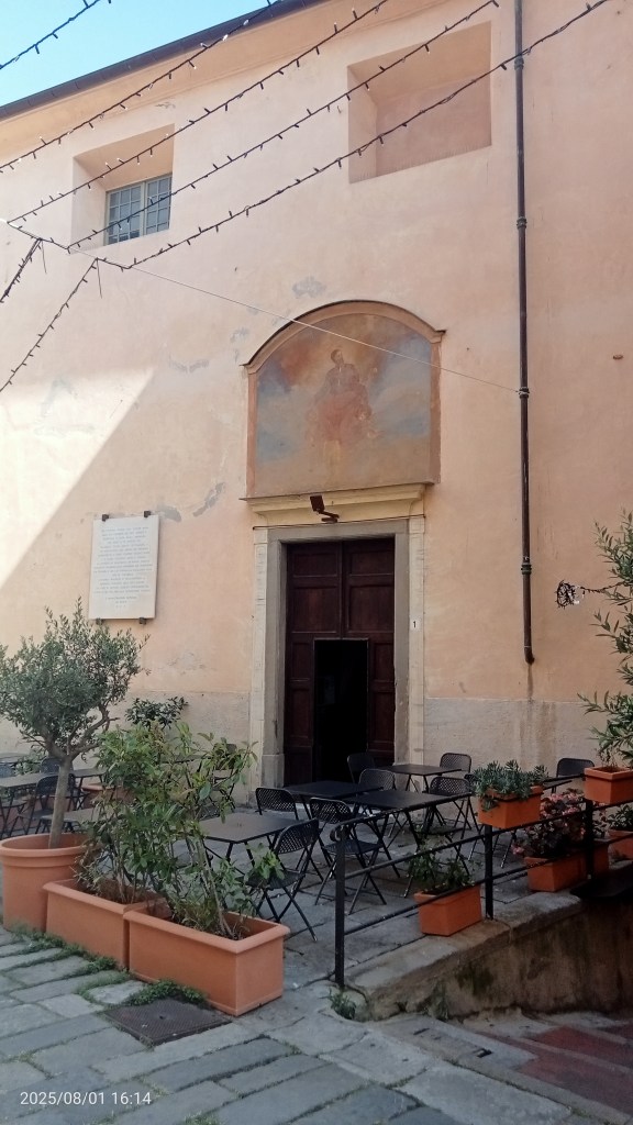 Giunti in piazza vi troverete a sinistra Via Lunga, ed a destra la piazza con i gradini bianchi della Chiesa della Maddalena. Accanto a Voi, a chiudere il lato sud della piazza, un muraglione di case con porticine piccole e scale ripide (tra cui, curiosità, seminascosto e distaccato l’ufficio tecnico del Comune, come foste a Topolinia) e più distante l’Oratorio di San Bartolomeo e la Porta Marina.