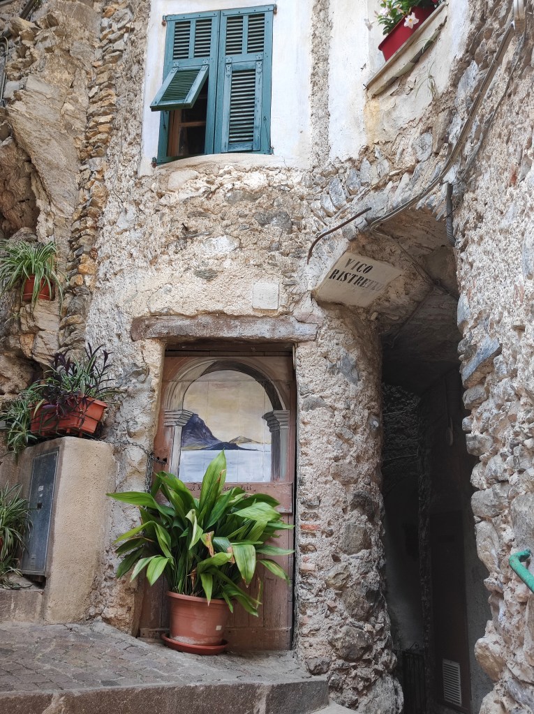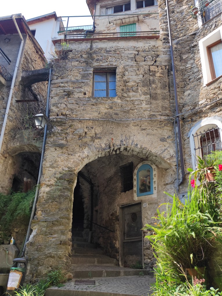 Torniamo sul carugio principale e proseguiamo. Vedrete intanto che le case sono sì medievali ma recano ancora tanti segni di una vita italiana ferma agli anni Cinquanta e Sessanta… Sono un po’ le case dei nonni, in cui il tempo si è fermato alle scritte elettorali sui muri, agli slogan del Ventennio, ed alle piccole botteghe di paese.