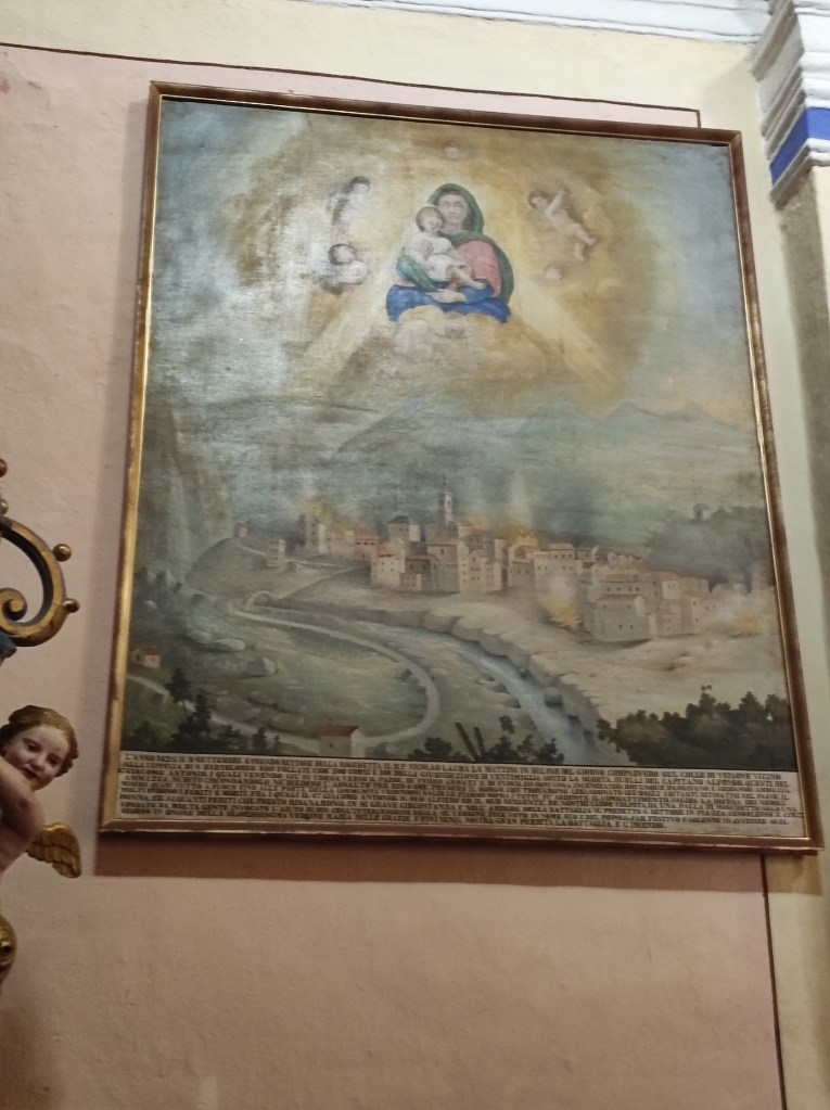 Ritornando alla opzione numero 2: entrati dalla porta del paese, troverete una leggera salita la quale vi condurra al fianco dell’Oratorio della Santissima Annunziata, che è datato al XV secolo. Di particolare interesse è la storia narrata nel dipinto del 1626 che tratta di un evento guerresco che coinvolse gli abitanti ed il borgo di Rocchetta nel 1625 e che grazie all’intervento della Vergine Maria ha risparmiato il paese dalle fiamme e dalla distruzione.