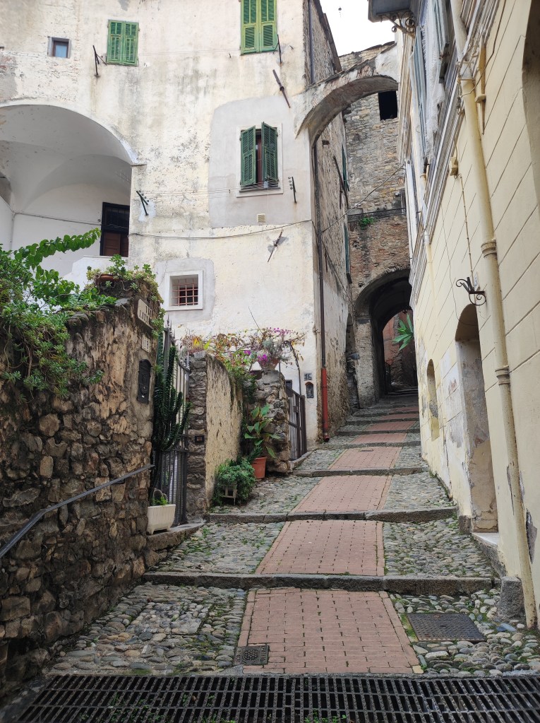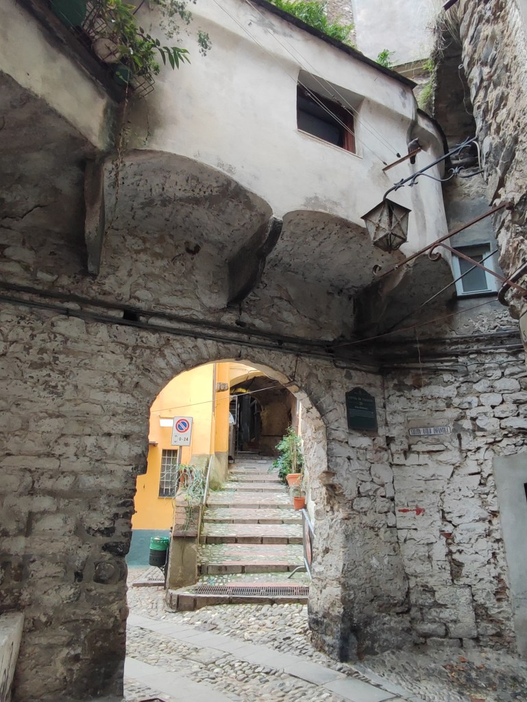 Risalite prendendo la piccola scalinata che si trova nell’angolo alto della piazza (Via Cardinal Gastaldi) e vi troverete nel cuore medievale di Taggia.