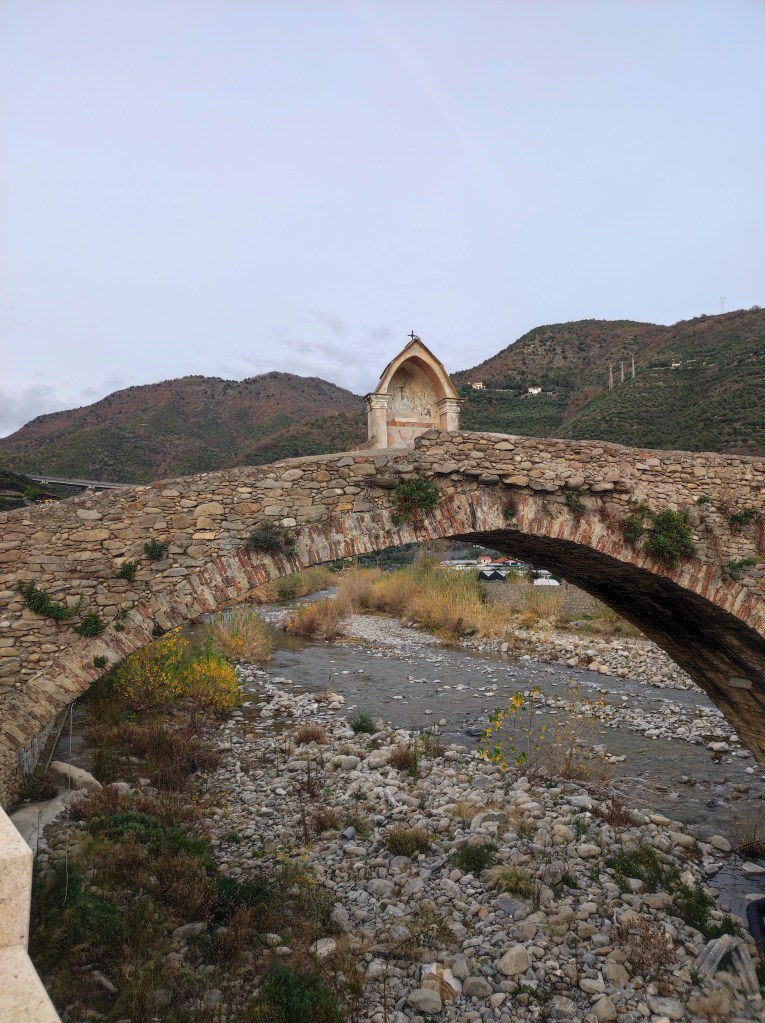 Due edicole ornano l’arrivo e la metà circa del ponte. In particolare vi parliamo di quella posiazionata a metà che racconta la storia di due bambini che si sono trovati nel mezzo di un terremoto, nel 1831, che ha fatto crollare l’arcata su cui stavano giocando. I bambini, caduti nel fiume con i pezzi del ponte, sono tuttavia rimasti miracolosamente illesi. Forse uno dei miracoli della famosa Madonna Miracolosa di Taggia?