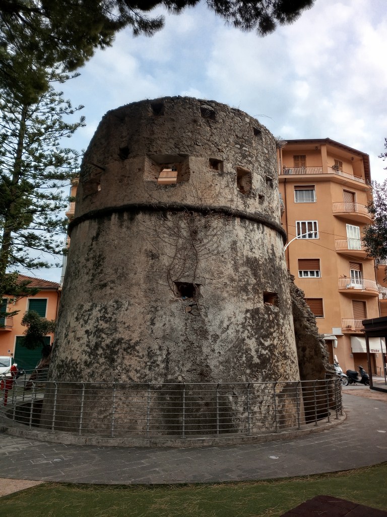 Puntate verso il Castello. Il borgo era cinto da una triplice cornice di mura: passerete una serie di porte antichissime (in Via Littardi) che sono dette Case Torri dei Clavesana, una della antiche famiglie che dominarono Taggia nel tardo medioevo.