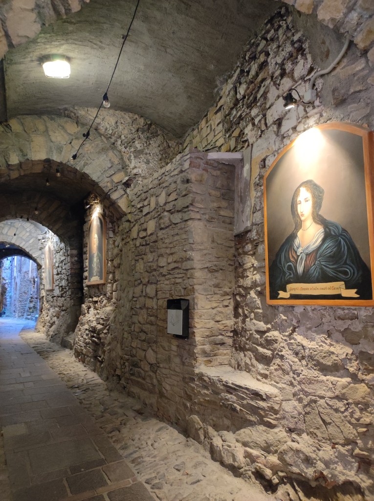 Noi abbiamo percorso i caruggi di sinistra, che fanno parte del nucleo più antico del paese. Incontrerete tutta una serie divertentissima ed interessante di ritratti della famiglia Cassini, sistemati lungo muri, nicchie e punti strategici.
