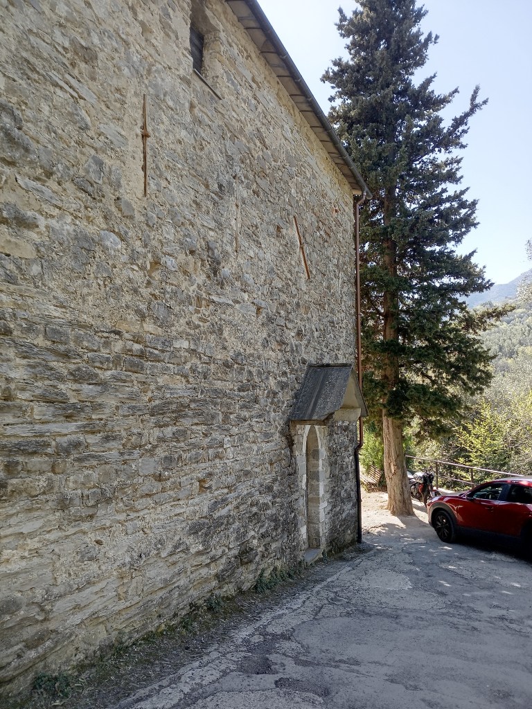 AVVERTENZA: davanti alla chiesa ci sono due posti auto. A nostro giudizio è meglio lasciare l’auto più in basso e arrivare a piedi, per evitare di restare incastrati in situazioni dove lo spazio di manovra è limitatissimo.