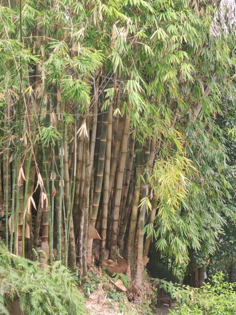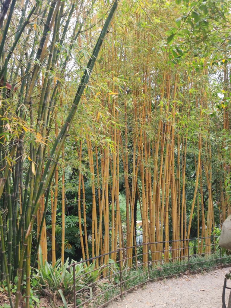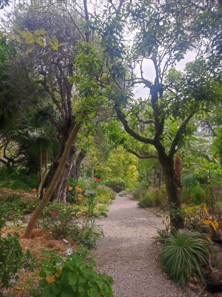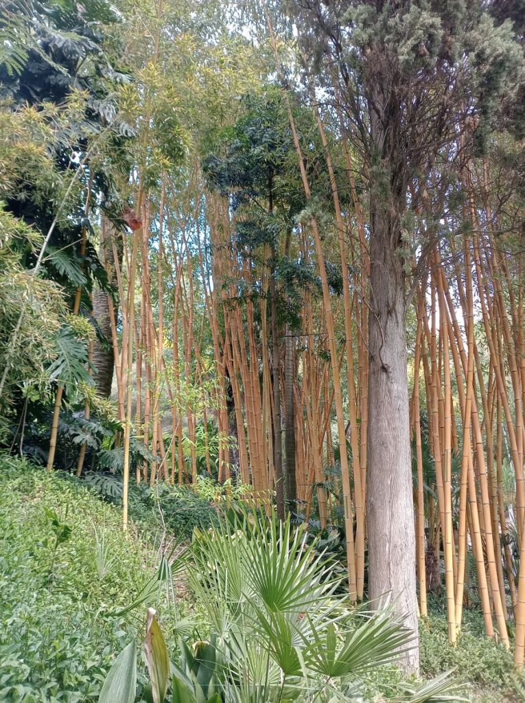 In un saliscendi molto dolce tra le terrazze dell’antico domain coltivato a olivi, poi riconvertito in orto botanico, si incontrano palme di numerosissime varietà, ficus, araucarie, felci giganti australiane, e poi distese di bambù di almeno tre varietà: una a canna gialla, una a canna nera e poi quella gigante, chiamata dendrocalamus asper. E poi, alberi da frutto tropicali, come l’avocado (una pianta altissima e carica di frutti) la papaya con i suoi frutti enormi e il Falso Kapok, anche detto “albero del filo di seta” che si caratterizza per i frutti avvolti in una curiosa nuvola di cotone e che è un parente stretto del baobab.